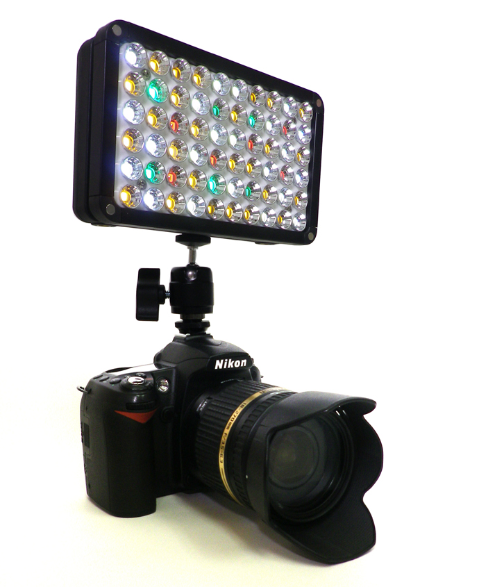 使用方法と機能 1)電源はSONY NP シリーズバッテリー(別売り)またはDタップケーブル、 AC/DCアダプタから供給します。 2)本体背面にある電源スイッチをONにするとLEDが点灯します。 3)本体背面の左下のボタンを押すごとに照射される光の色温度が 2800K → 3200K → 4000K → 4800K → 5600K → 6500K と切り替わります。 Minima30の底面には標準の三脚固定ネジ穴(1/4-20UNC)がありますので三脚への取り付けが可能です。また、付属のホットシューアダプタでカメラのホットシュー(アクセサリーシュー)に取り付けることも可能です。 |